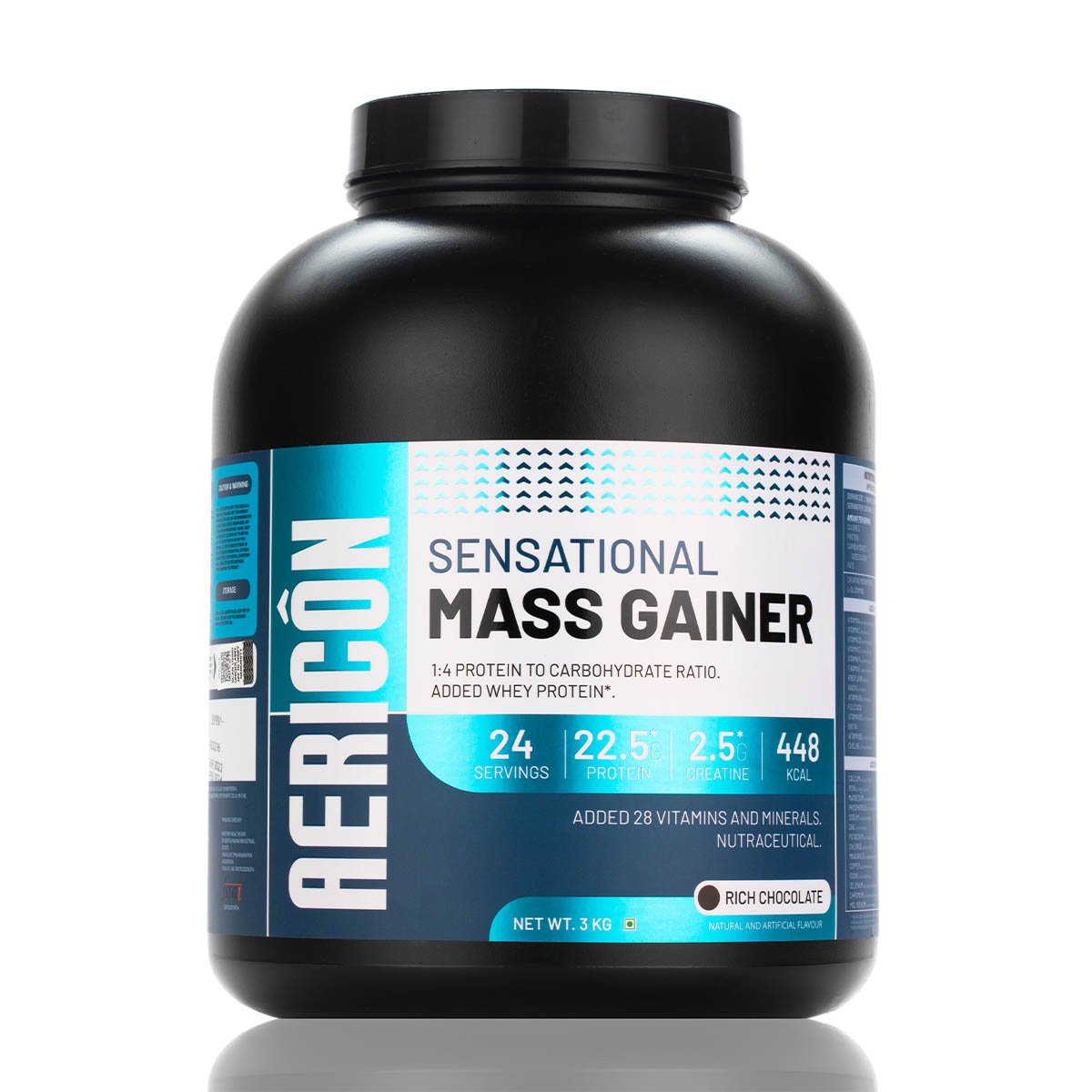 Aericon Mass Gainer is the premium quality bulk mass gainer engineered for individuals who are looking to bulk up the mass. It has a 1:4 ratio of protein to carbohydrates. Aericon Mass Gainer is an ideal product for strength and power with bulk mass gaining. It has a whey protein and slow and fast releasing carbohydrates blend to keep glycogen levels high, preventing muscle wasting and improving anabolism all the day long. This product is undoubtedly, the most scientifically advanced gaining formula. Aericon Mass Gainer offers delicious chocolate flavour which will make you crave for more and satisfying your taste with keeping you healthy.